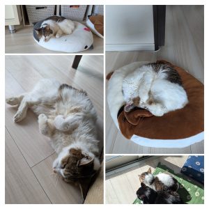 朝、頭を撫でなぐさめ、電車を乗り遅れてしまった時には、社員の方がお客様のスタジオの入場を手伝って下さったり、時には息子の事を心配して親身に話を聞いて下さる方がいらっしゃったり、息子の同級生のお母様の中には一志の事を親身に考えてくださる方がいたり、私は本当にたくさんの方々に恵まれているなと思います。猫たちがいたから、息子も家で一人でも抱っこして耐えられたようです。